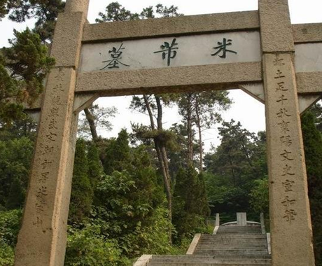 米芾(1051年-1107年),初名黻,后改芾,字元章,自署姓名米或为芈,祖居太原,后迁湖北襄阳,谪居润州(现江苏镇江),时人号海岳外史,又号鬻熊后人、火正后人。北宋书法家、画家、书画理论家,与蔡襄、苏轼、黄庭坚合称“宋四家”。曾任校书郎、书画博士、礼部员外郎。米芾墓在江苏省镇江市南郊鹤林寺附近的黄鹤山北麓,为其衣冠冢。墓有石扩,直径11米,坟包径约4米,外包护石。王有台阶60级,两边置玉带坡,墓道由上而下向北伸,长60米。坟前墓碑,上刻1987年春重修,中央部分镌刻“宋礼部员外郎米芾元章之墓,曼殊后学启功敬题”。墓门两侧各有一个下方上圆雕刻云朵纹的大理石柱,墓前50多米处尚有石坊柱一对,上刻联语:“抔土足千秋襄阳文史宜和笔,丛林纳数武来朝郎署米家山。”自米芾墓重修以来,每年接待包括日韩东南亚在内的大量海内外的游客,许多慕名而来的文人骚客将之视为“文化之冢”。