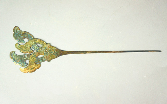 发钗作为我国古代女子用于固定和装饰发髻的工具,一般弯成两股,呈“U”形,上粗下细便于插戴。发钗插戴时,可以单支插,也可多支插。唐代贵族妇女流行梳高髻,往往要以多支发钗对插,既可固发,又可装饰。